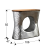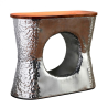 Consola rústica, realizada artesanalmente en chapa de aluminio parcialmente martelado. Tapa de madera de teka , acabado natural.