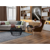 Mesa de centro realizada en metal acabado negro mate. Tapa de cristal smoke de 8 mm.