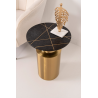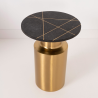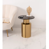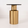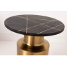 MESA AUXILIAR 51*40*40 CM. BASE METAL DORADO CILINDRICO Y TAPA MARMOL NEGRO CON INCRUSTACIONES METALICAS