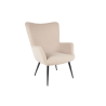 BUTACA RESPALDO ALTO TAPIZADO BEIGE PIEDRA, PATAS MADERA NEGRAS. 94*81*68 CM