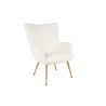 Fauteuil Haut Dossier, Tissu Blanc Cassé, Pieds en Bois Naturel. 948168 CM