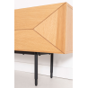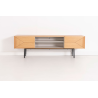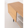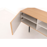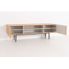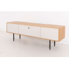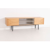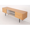 MEUBLE TV KALMAR. Placage de chêne naturel et mélamine aquamarine. Pieds en métal noir.