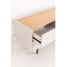 MUEBLE TV POL. LACADO GRIS PIEDRA Y CHAPA DE ROBLE. PATAS METAL NEGRO