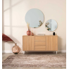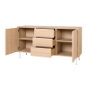 APARADOR PUSH 2 PUERTAS + 3 CAJONES. MELAMINA ROBLE 19mm (4 PATAS MADERA 15 cm BLANCO)