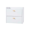 MESITA 2 CAJONES. MELAMINA 19 mm. BLANCO NIEVE. GUIA FRENO CON EXTRACCIÓN TOTAL. (PARA COLGAR EN PARED)