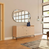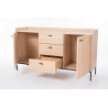 APARADOR 2 PUERTAS y 3 CAJONES. MELAMINA 19 mm ROBLE. GUIA DE FRENO CON EXTRACCIÓN TOTAL. (PATAS METALICAS)