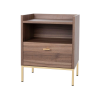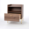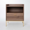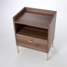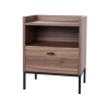 MESITA 1 CAJON + HUECO. MELAMINA 19 mm NOGAL EMPERADOR.  GUIA FRENO  CON EXTRACCIÓN TOTAL (PATAS METALICAS)