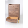 SINFONIER 5 CAJONES. MELAMINA 19 mm NOGAL EMPERADOR. GUIA DE FRENO CON EXTRACCIÓN TOTAL. (PATAS METALICAS)
