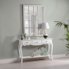 CONSOLE AVEC ÉTAGÈRE CLASSIQUE 3 TIROIRS. COULEUR BLANCHE - BOUTON D'HORLOGE EN CÉRAMIQUE