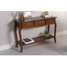 CONSOLE AVEC ÉTAGÈRE CLASSIQUE 3 TIROIRS. COULEUR NOYER - MANCHE TEAR DORÉ