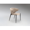 Silla realizada en metal, acabado negro mate. Asiento y respaldo de madera contrachapada y espuma. Tapizado textil de poli?ster 100% en color beis. Limpieza en seco.
