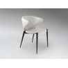 Silla realizada en metal, acabado negro mate. Asiento y respaldo de madera contrachapada y espuma. Tapizado textil de poli?ster 100% en color blanco hueso. Limpieza en seco.