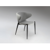 Silla realizada en metal, acabado negro mate. Asiento y respaldo de madera contrachapada y espuma. Tapizado textil de poli?ster 100% en color gris claro. Limpieza en seco.
