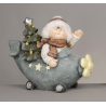 Figura de niño en su avión llevando árbol de navidad con luces led.