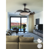 Ventilador de techo con luz LED DIMABLE CCT realizado en metal acabado negro mate y 4 aspas retr?ctiles de acr?lico negro brillo, semiopaco. Difusor acr?lico opal. Motor DC de 6 velocidades e inversi?n. 3 temperaturas de color. Temporizador. Dimable
